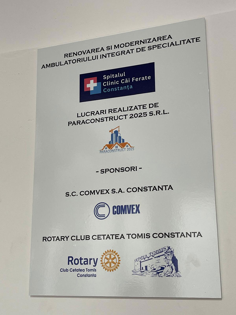 „Ne bucurăm că am putut fi alături de Spitalul Clinic CF Constanța și, împreună cu firma Comvex SA, am contribuit la renovarea și modernizarea parțială a ambulatoriului. Intenționăm să continuăm proiectele de modernizare și dotare a cabinetelor cu aparatură modernă, pentru a asigura cele mai bune condiții de tratament pentru comunitatea locală”, au transmis reprezentanții Rotary Club Cetatea Tomis Constanța.